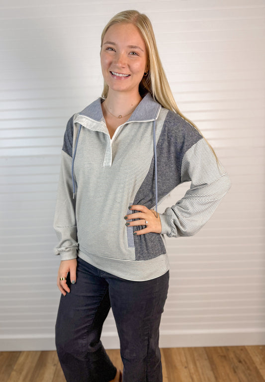 Half Zip Stripe Detail Pullover - Grey/Blue