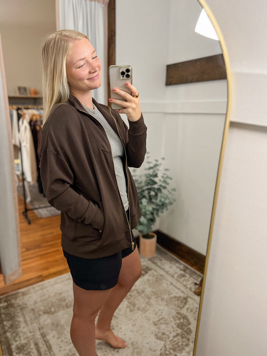 Scuba Gold Trim Zip-Up Jacket - EspressoRegular price $49.95 USDRegular priceUnit price per-