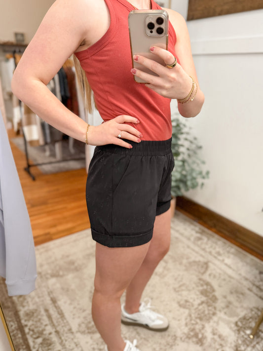 Highwaist Cuffed Athletic Shorts - Black
