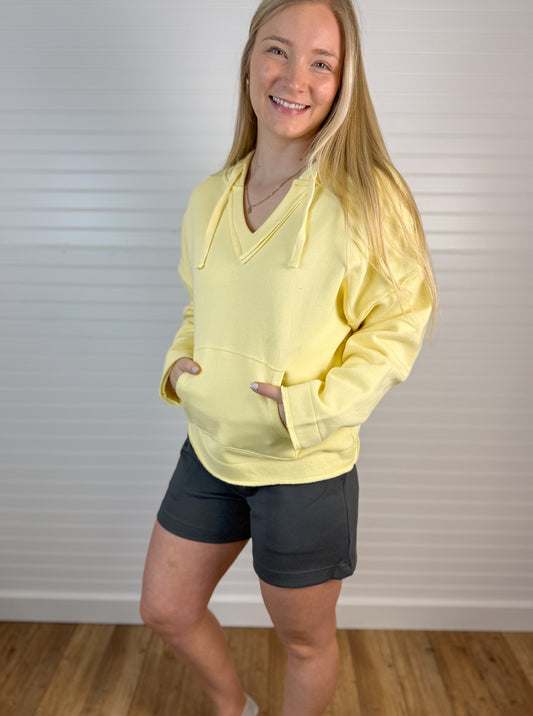 Cotton V-Neck Sweatshirt - Yellow
