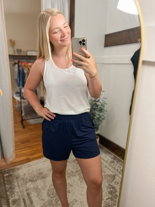 Raw Edge Waffle Knit Boatneck Top - Midnight Navy