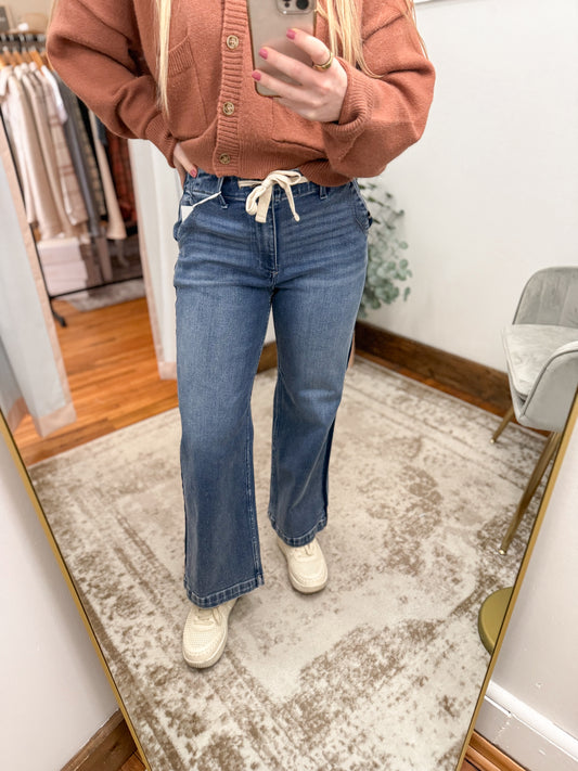 Elastic Band Cropped Wide Leg Denim