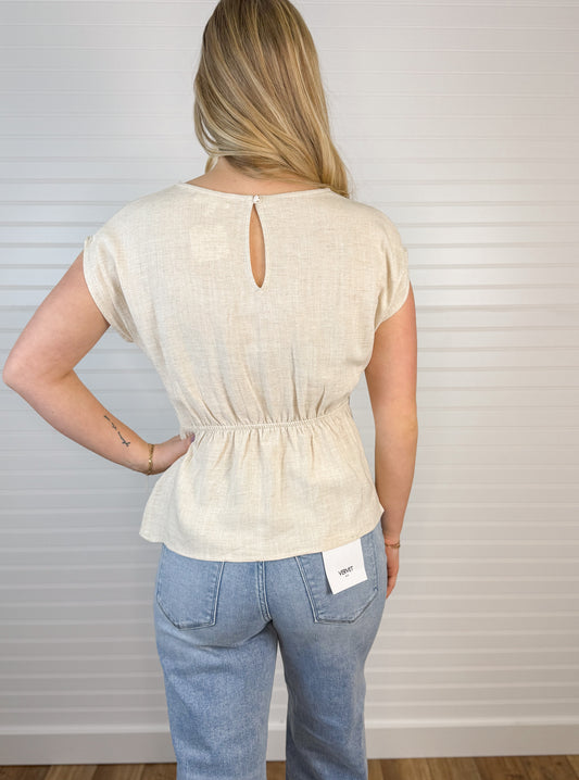 Short Sleeve Waist Shirring Detail Top - Oatmeal
