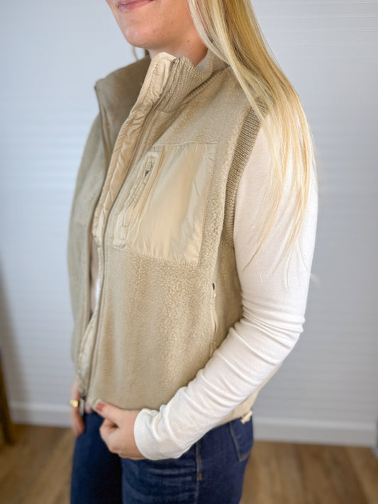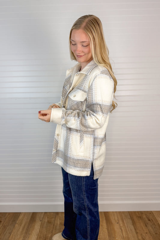 Cozy Fleece Plaid Shacket - Ivory/Taupe