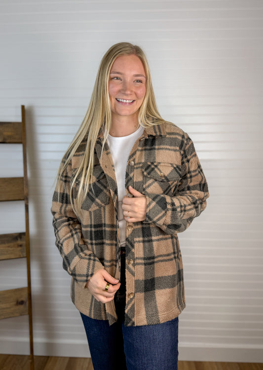 Cozy Fleece Plaid Shacket - Caramel/BlackRegular price $79.95 USDRegular priceUnit price per-