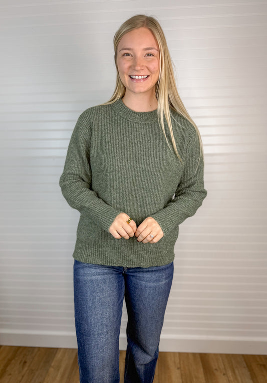 Soft Chunky Ribbed Mock Neck Sweater - Oatmeal