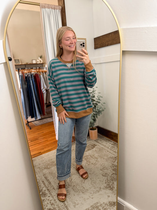 Color Contrast Stripe Pullover - Teal/CaramelRegular price $62.95 USDRegular priceUnit price per-