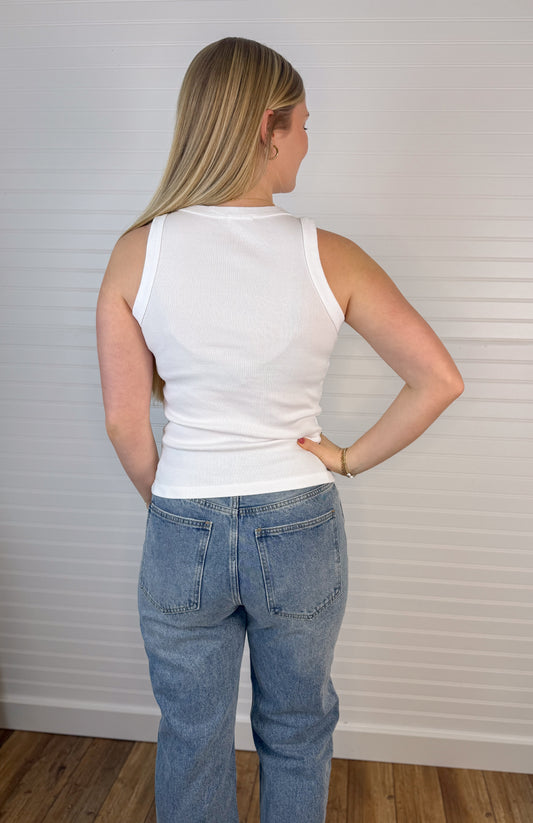 Classic Ribbed Slim Tank - White