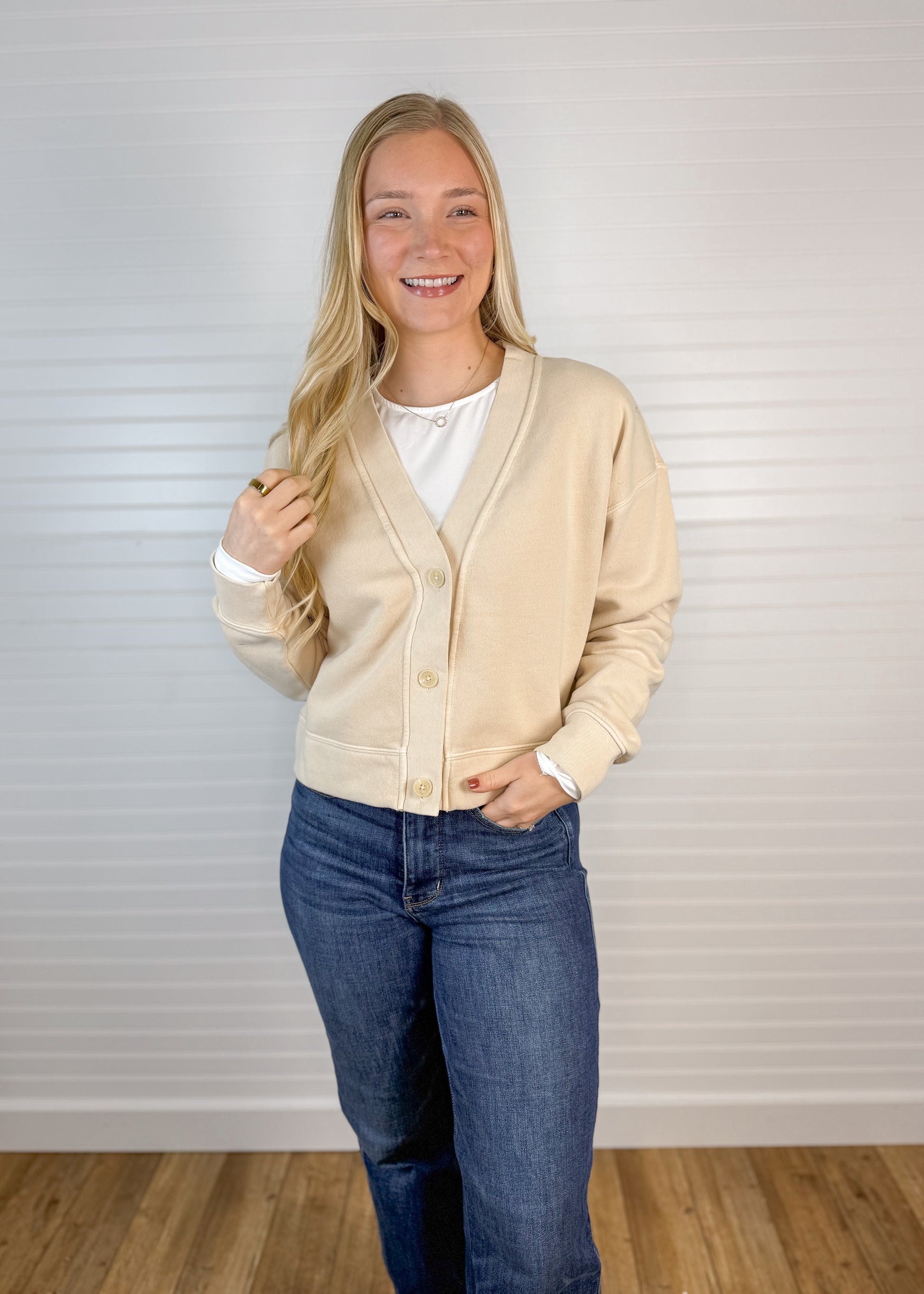 Brushed Fleece Button Front Cardigan - Oatmeal