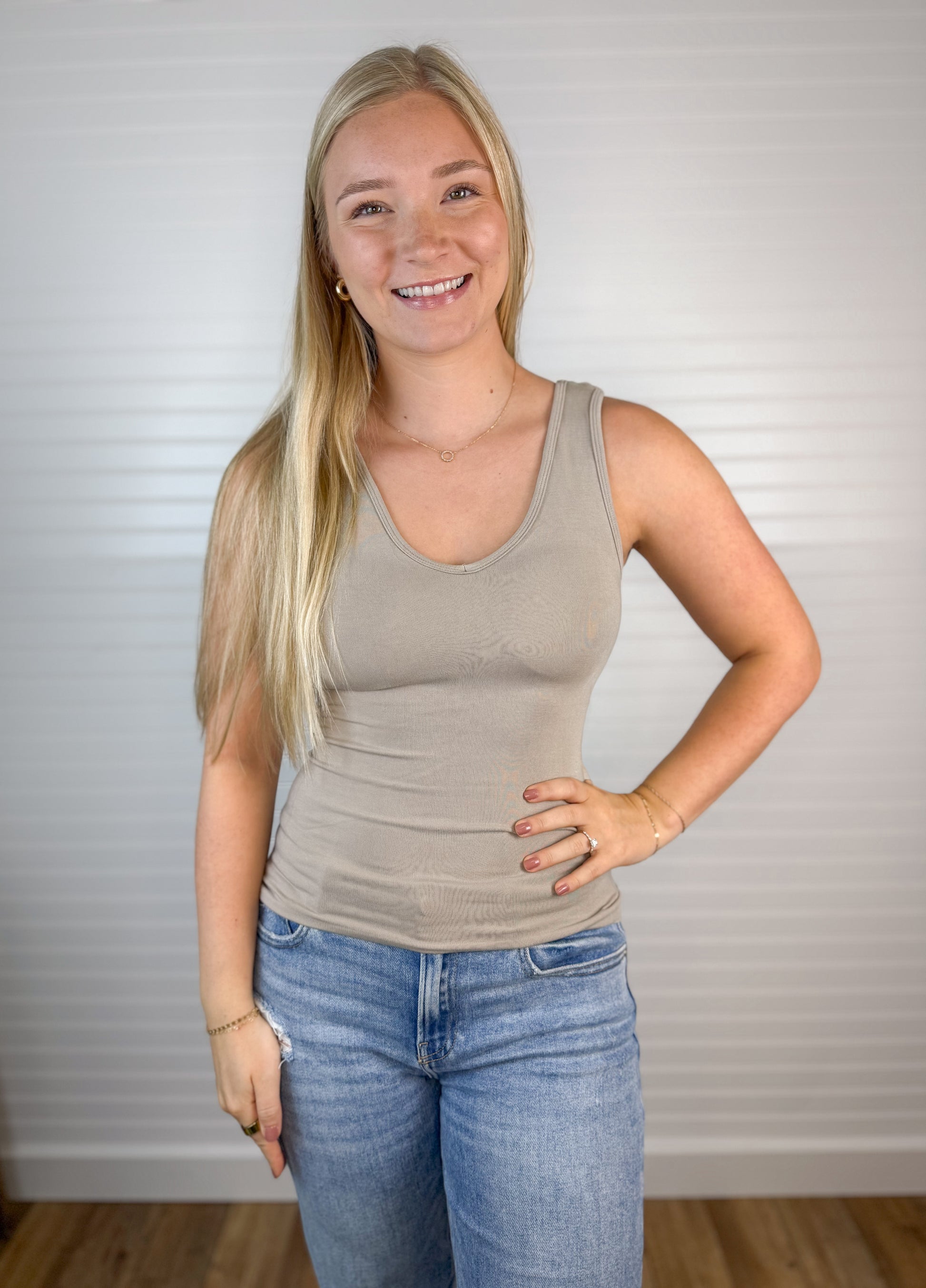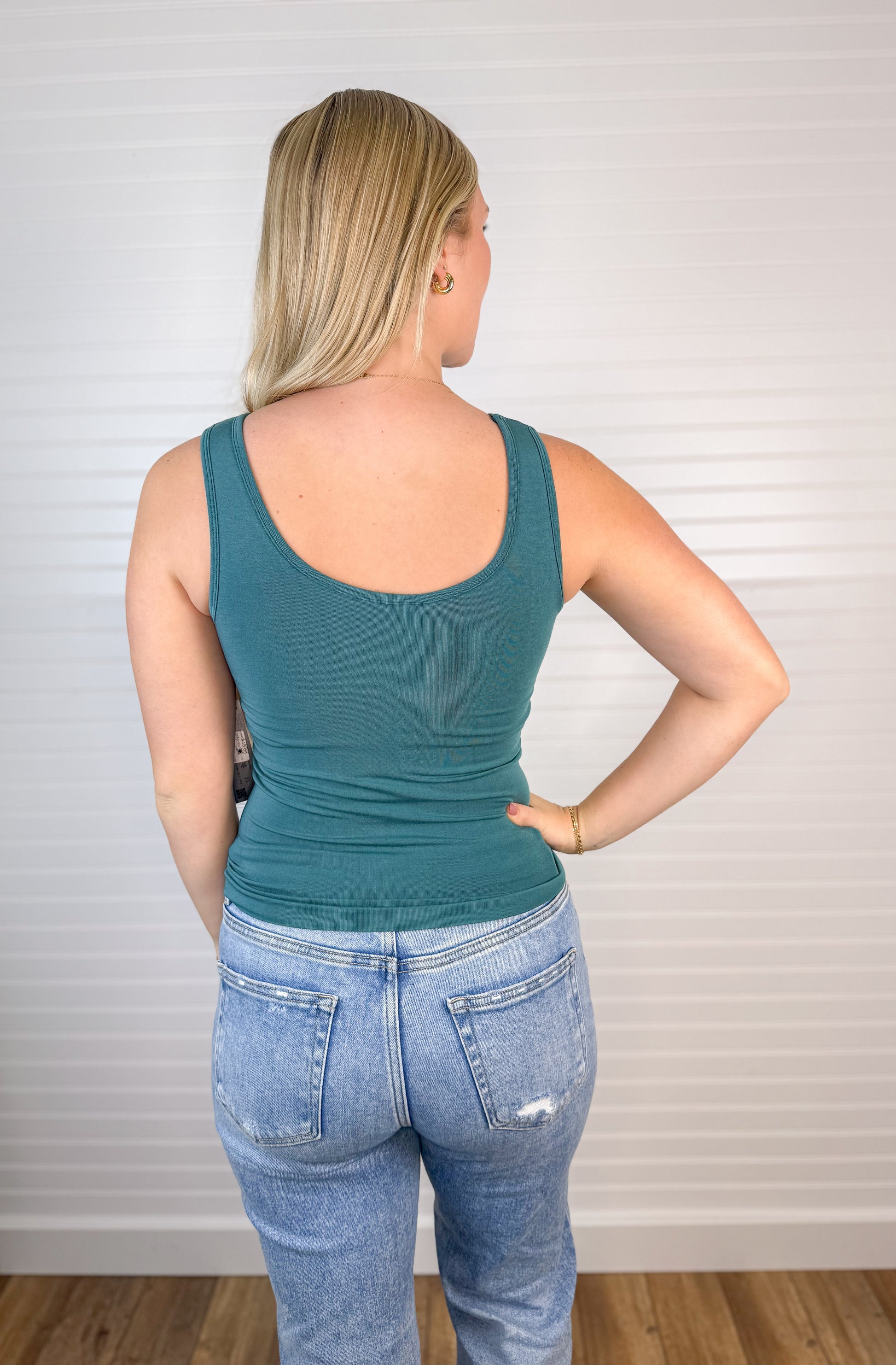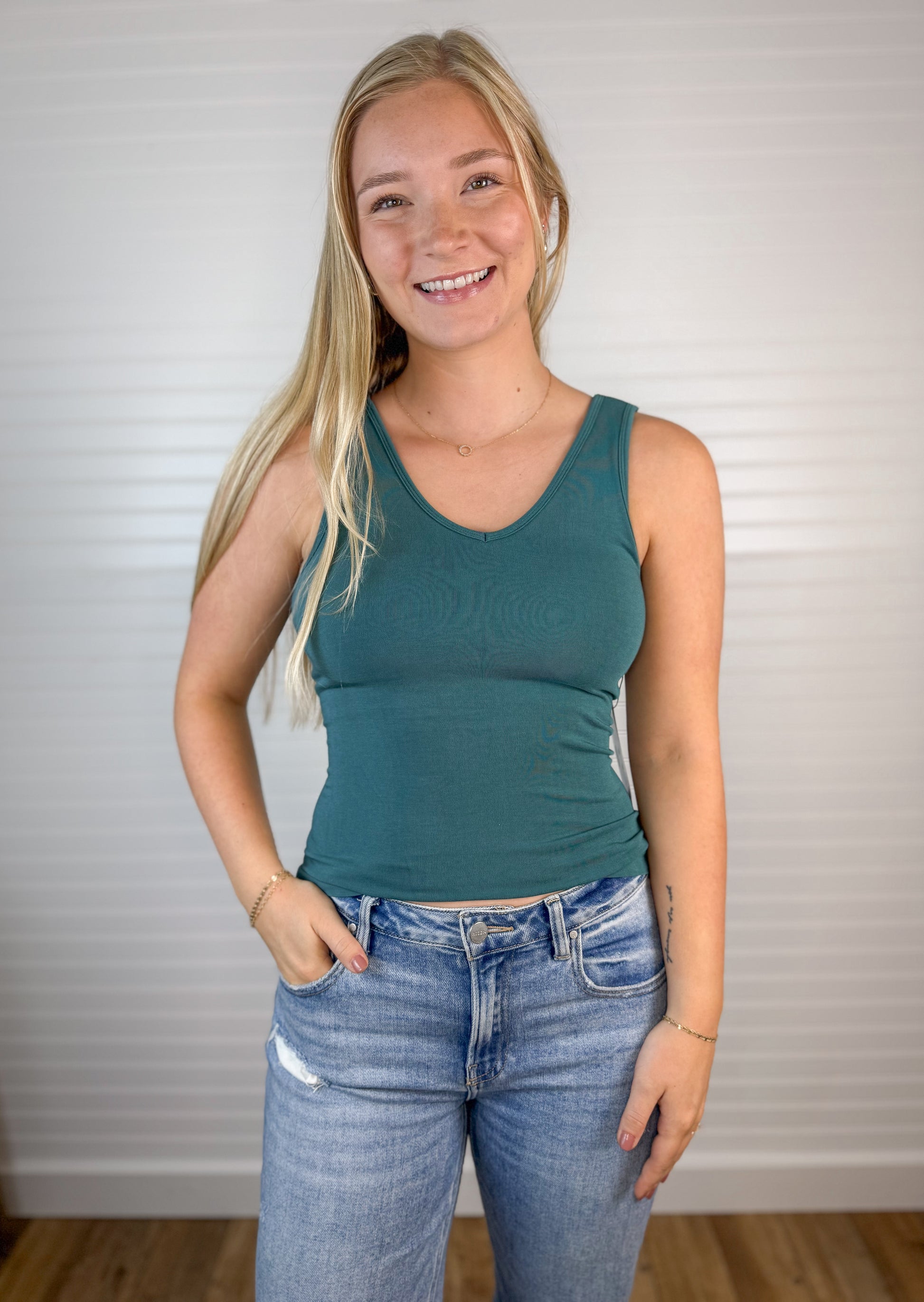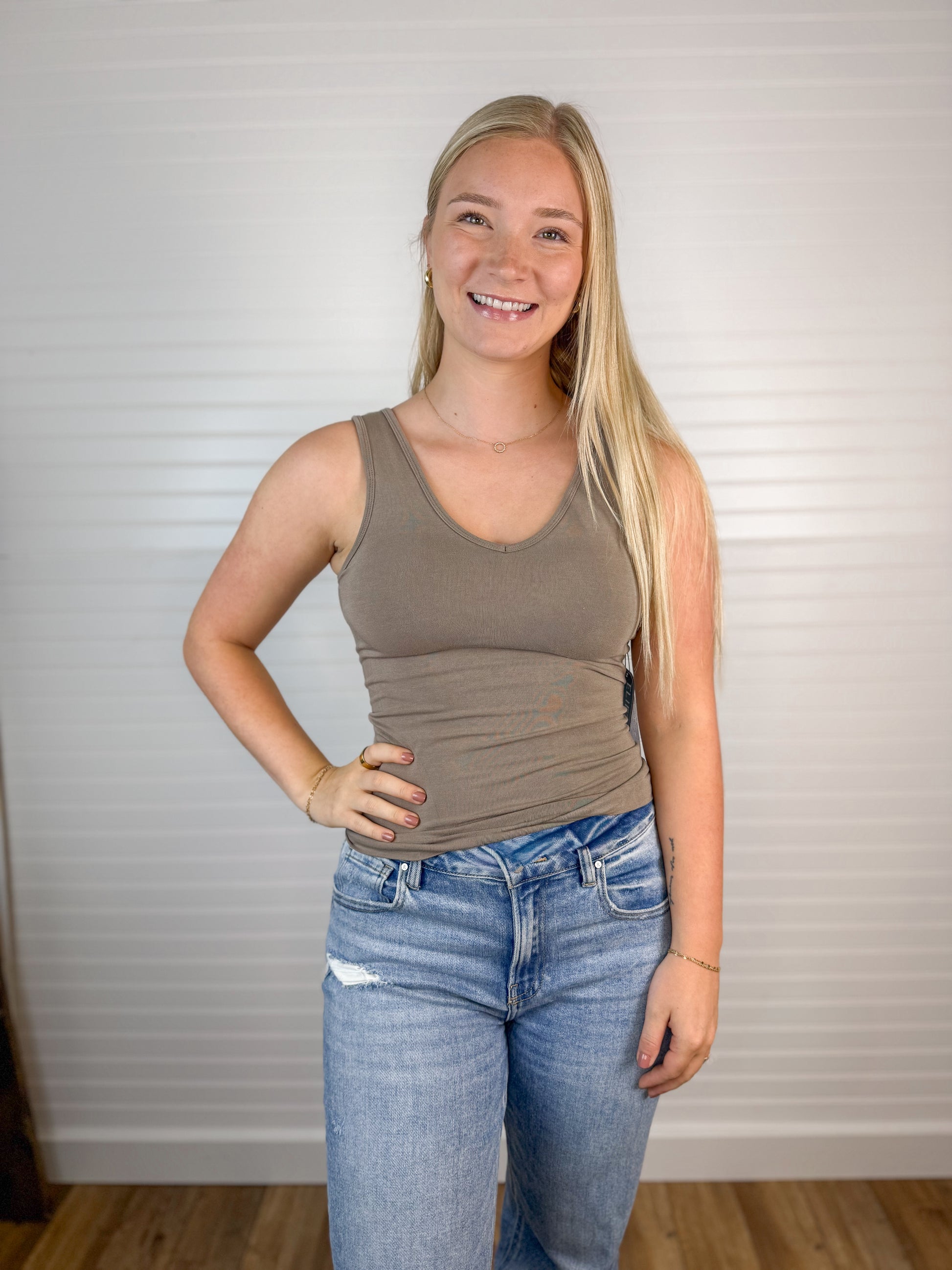 Reversible Tank with a Built In Bra! This supportive, everyday top is designed to make you look and feel amazing all day. With its built-in bra, reversible design for different necklines, and removeable padding, you can be sure that you're getting comfort and coverage.