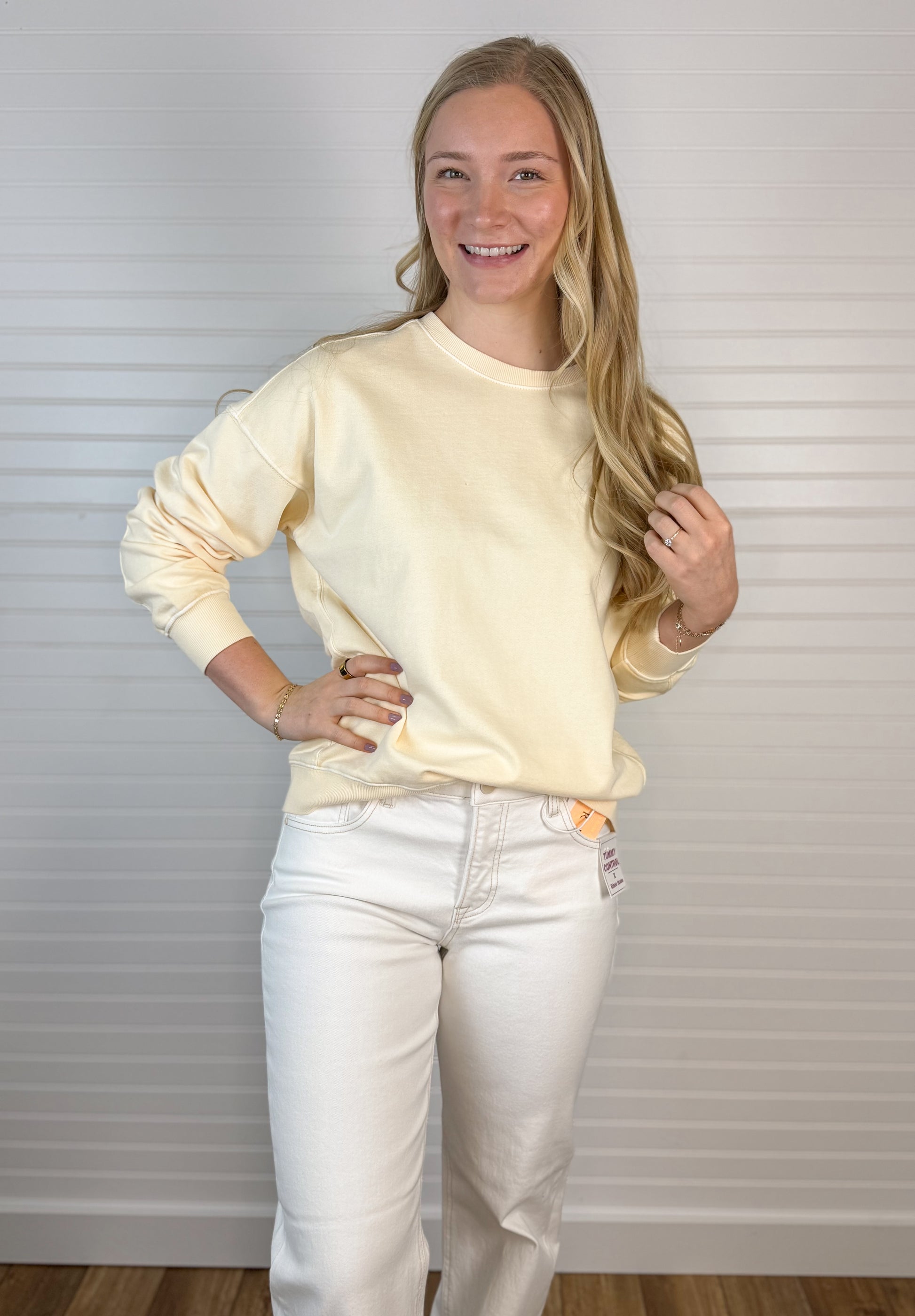 Garment Dye Cotton Terry Pullover - Butter