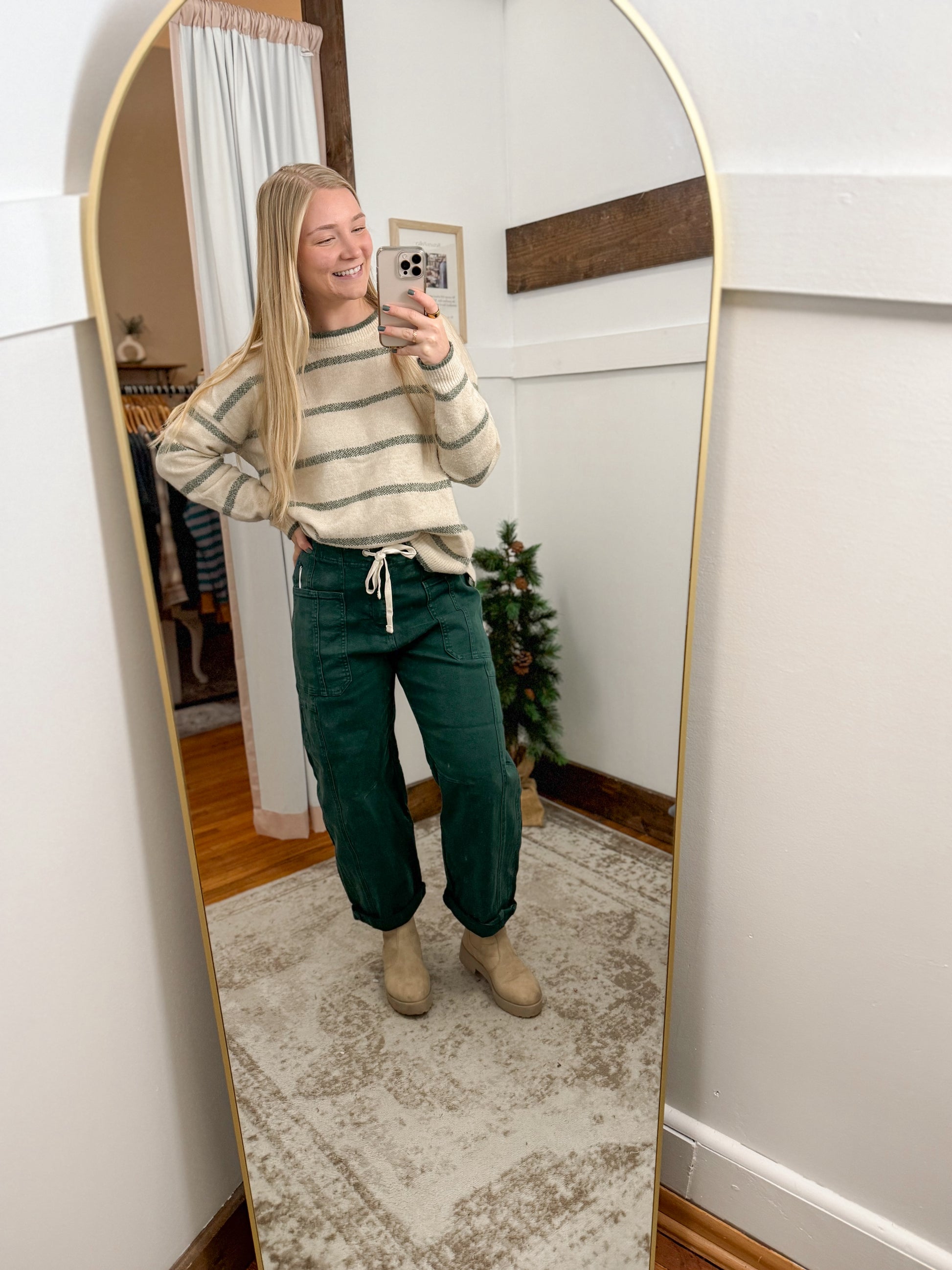 High Rise Crop Wide Barrel Cuffed Denim - Hunter