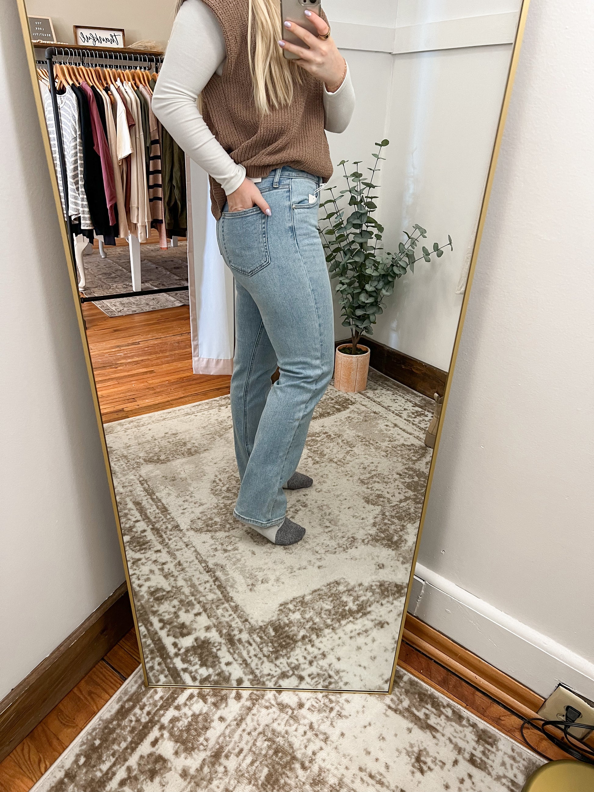 Elevate your denim game with our Midrise Straight Denim in a light wash! With a classic straight leg design and stretch fabric, these jeans offer both style and comfort. The 10'' rise and 28'' inseam flatter your figure, while the 95% cotton composition provides durability. Perfect for a timeless and effortless look.