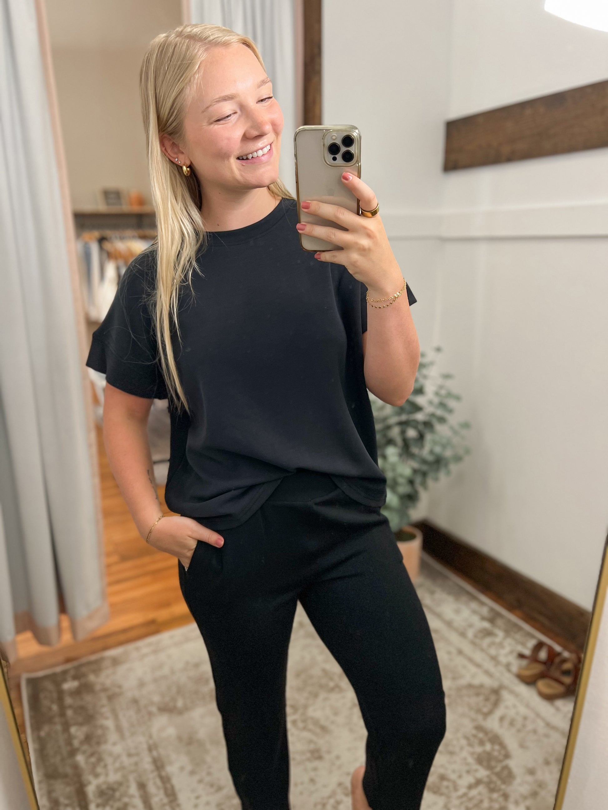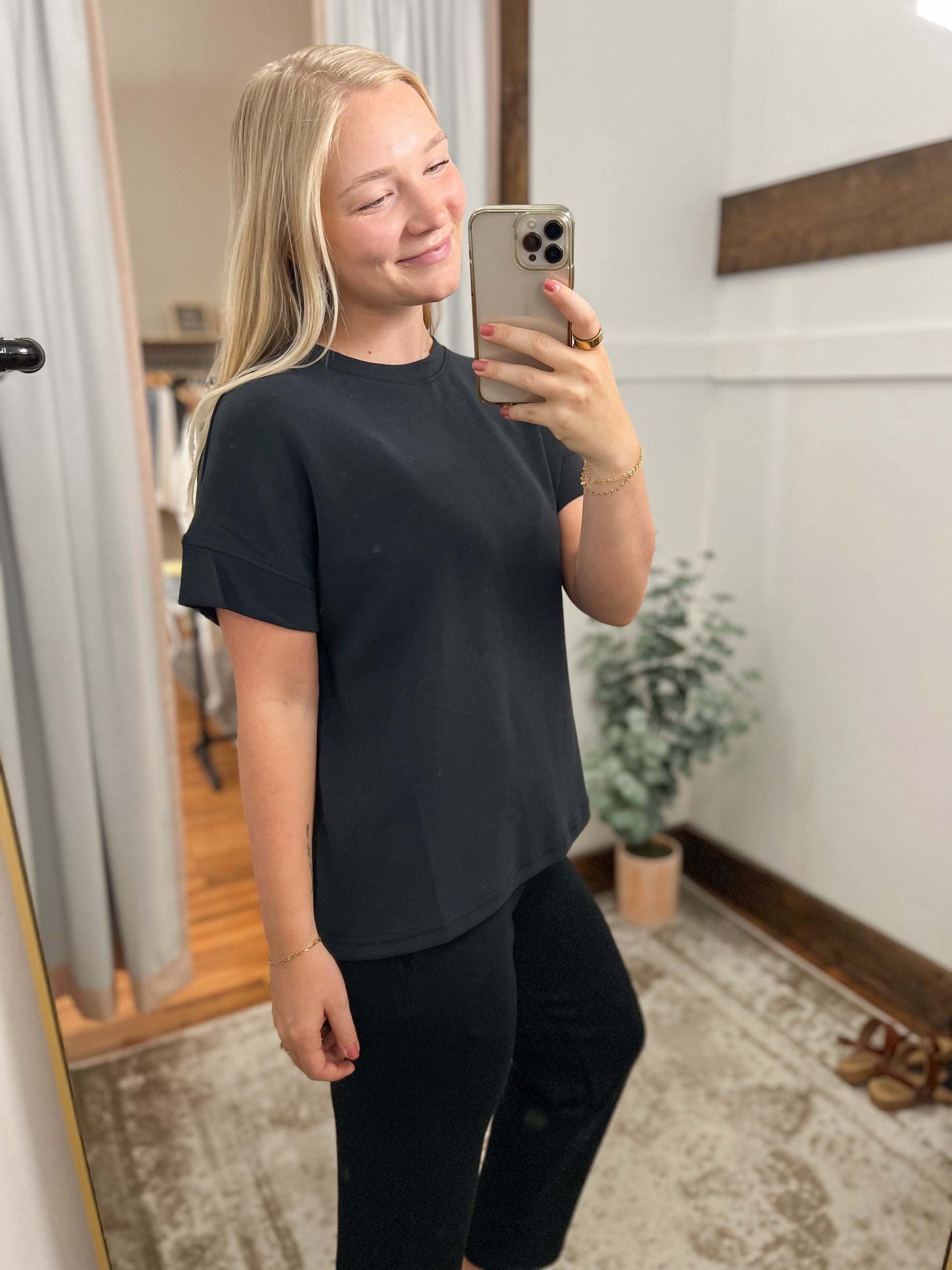 A classic made cooler. This tee is crafted from our buttery-soft, lightweight scuba fabric that drapes like a dream and feels even better. With a clean silhouette and smooth hand feel, this short sleeve essential is perfect for lounging, layering, or taking on the day with effortless ease. It’s the kind of tee you’ll reach for again and again.