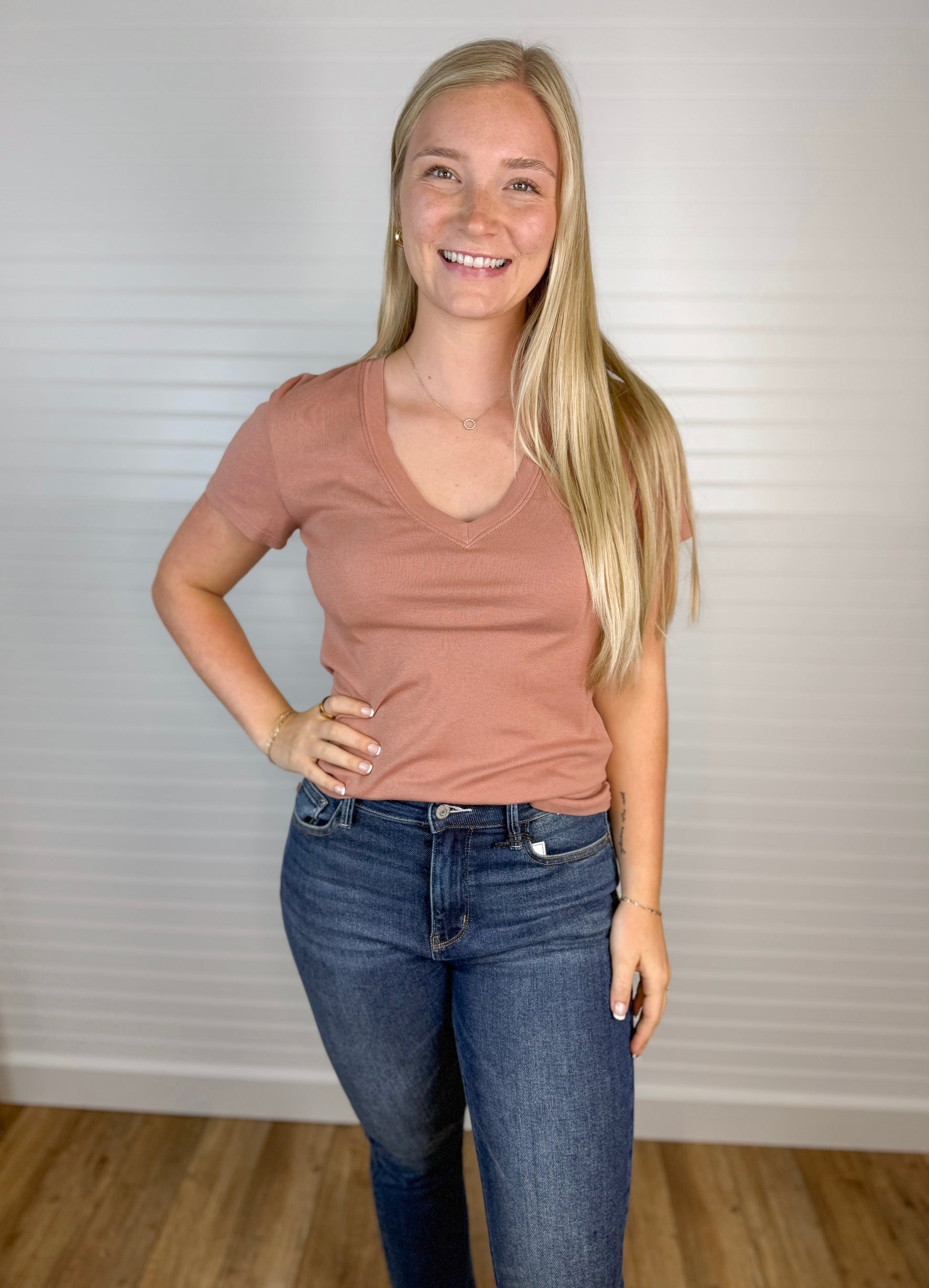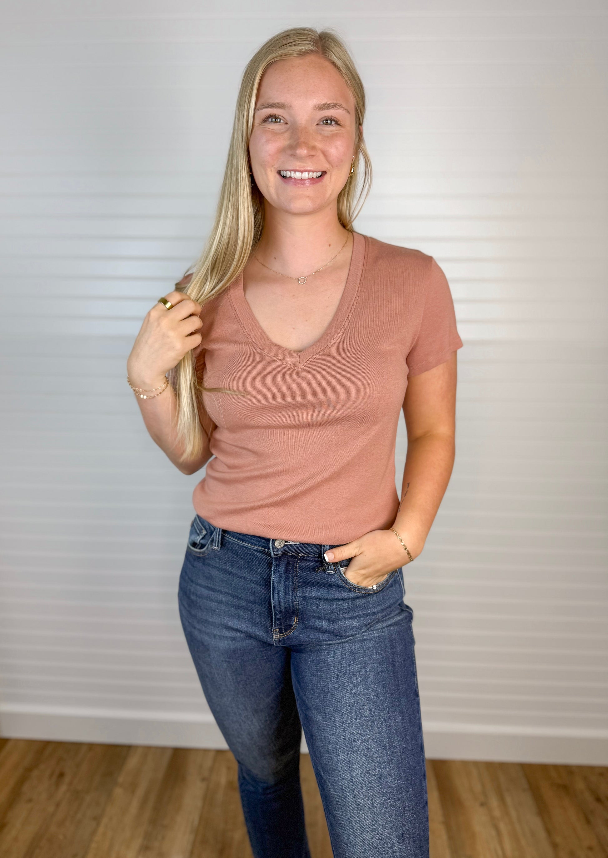 Short Sleeve Slim V-Neck Tee (2 colors)
