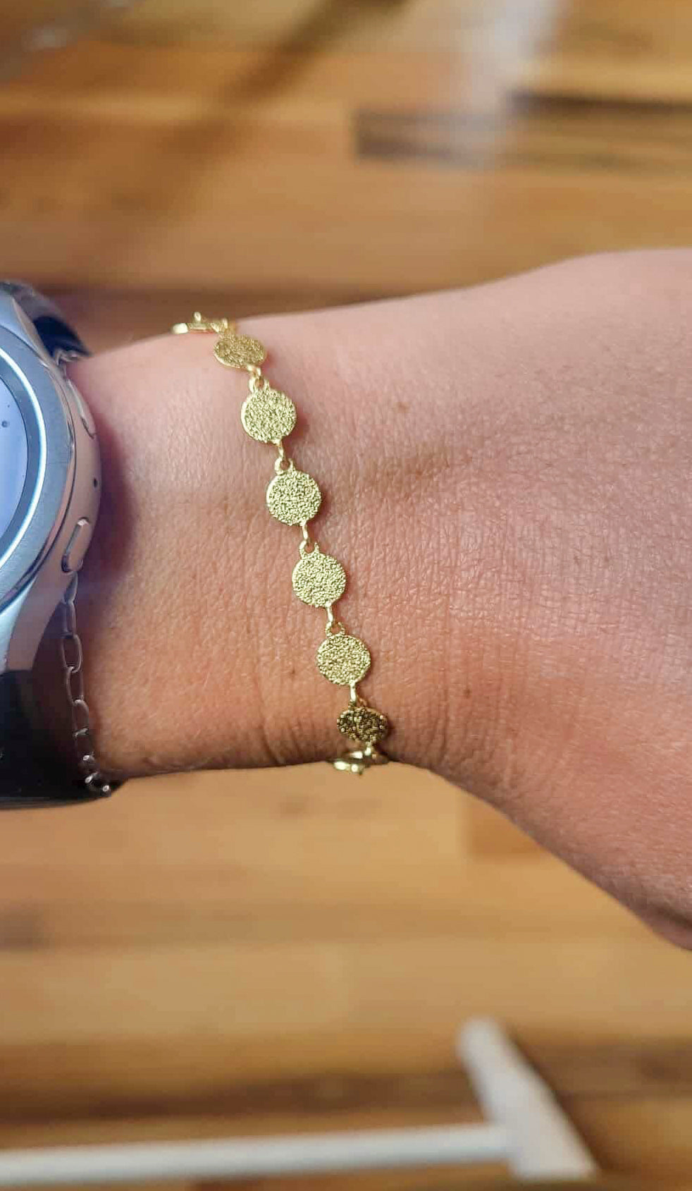 Textured Circle Chain Bracelet - Gold