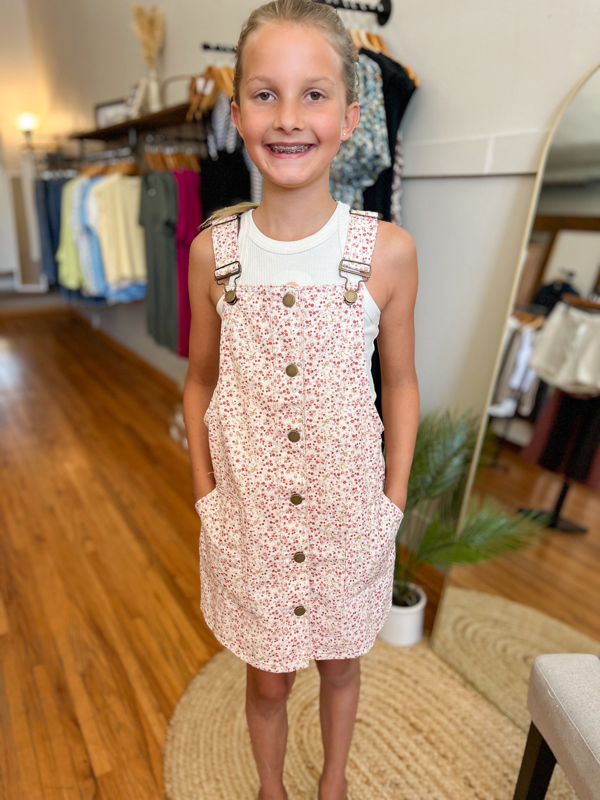 This charming floral overall dress is made from 100% cotton, ensuring comfort and breathability for active tween and kids girls. Its playful print and easy-to-wear design make it perfect for everyday fun and casual outings.