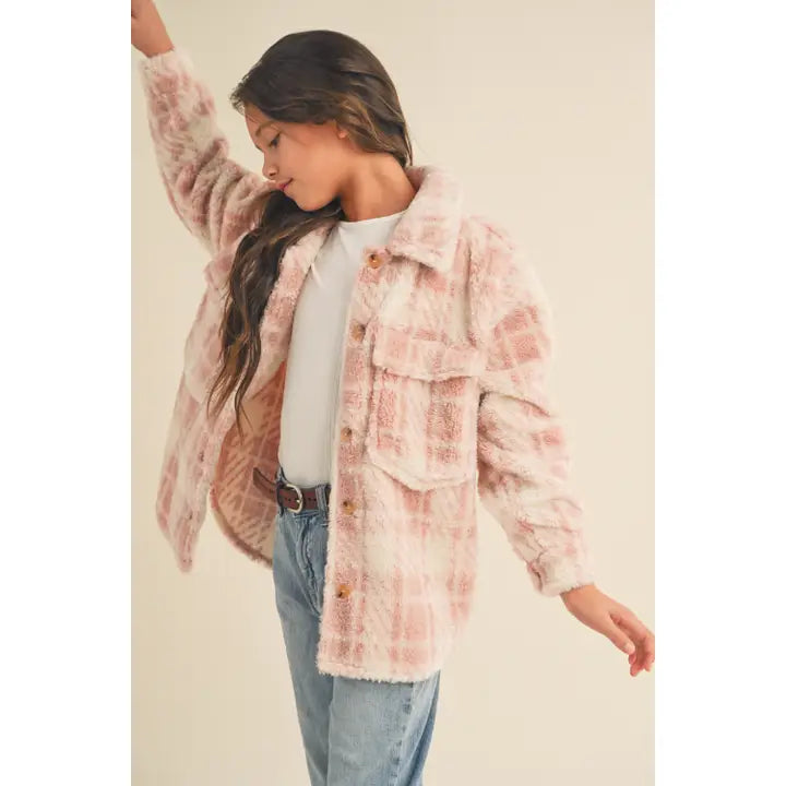 Flannel fabric creates this stylish and classic girl's plaid shirt jacket with a casual loose fit, front button closure and lapel collar for a comfortable fit that will keep you warm and stylish in autumn, winter, and spring!